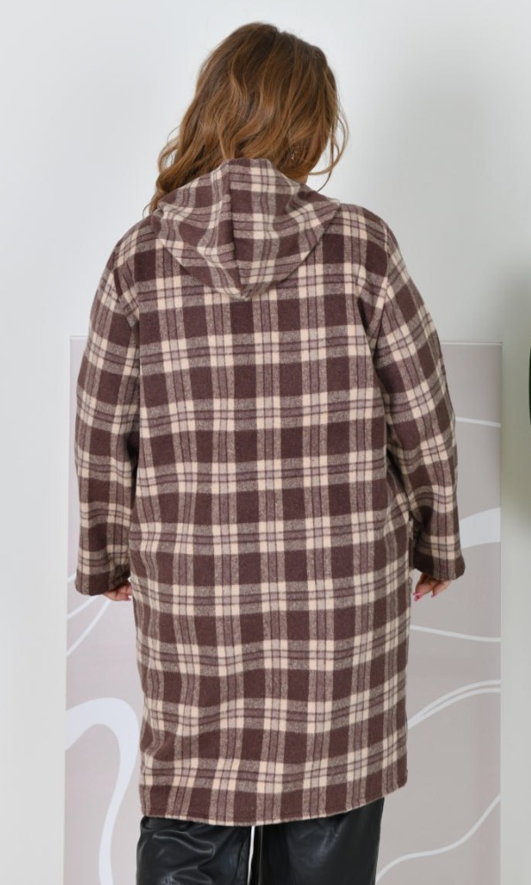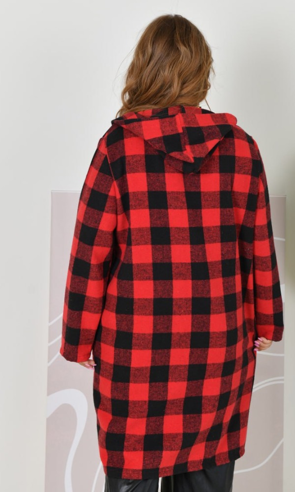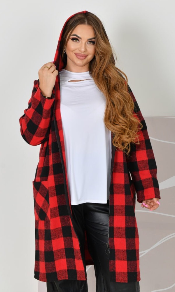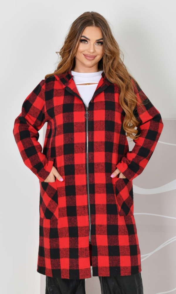 Силует кардигану прямий, вільний, є капюшон. Застібається на блискавку. Попереду є дві накладні кишені. Без підкладки.