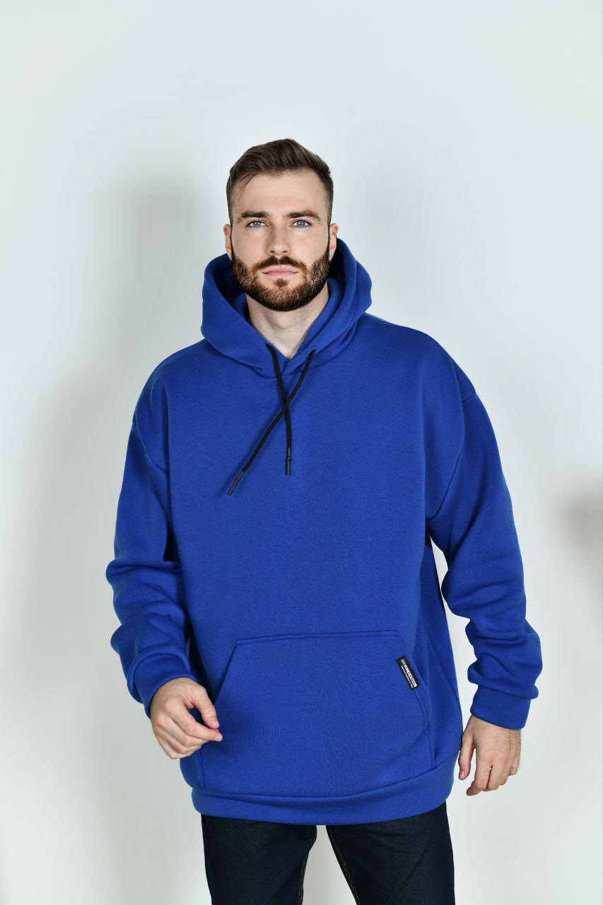 Капюшон подвійний, в куліску протягнуто шнурок. Лінія плеча спущена, рукави на манжетах. Попереду оброблено кишеню «кенгуру», яка декорована нашивкою.