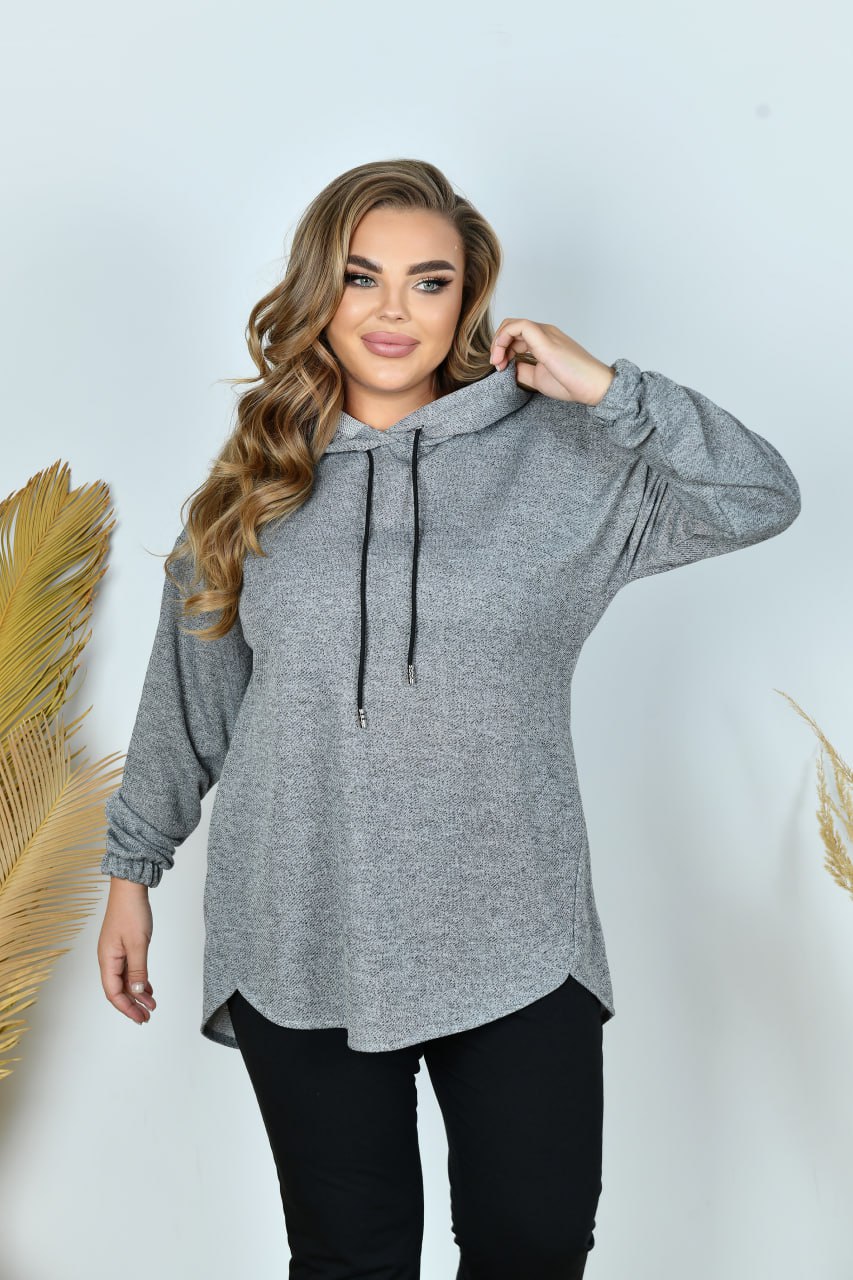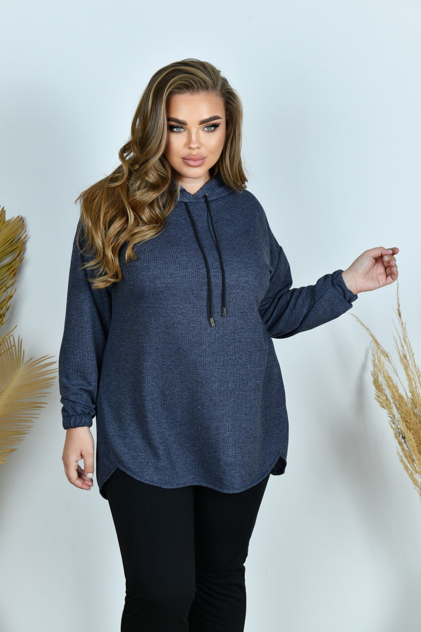 Туніка із тринитки-«петлі» високої якості, рукав на резинці. Низ туніки оформлений асиметрично. Кишень, застібок немає.