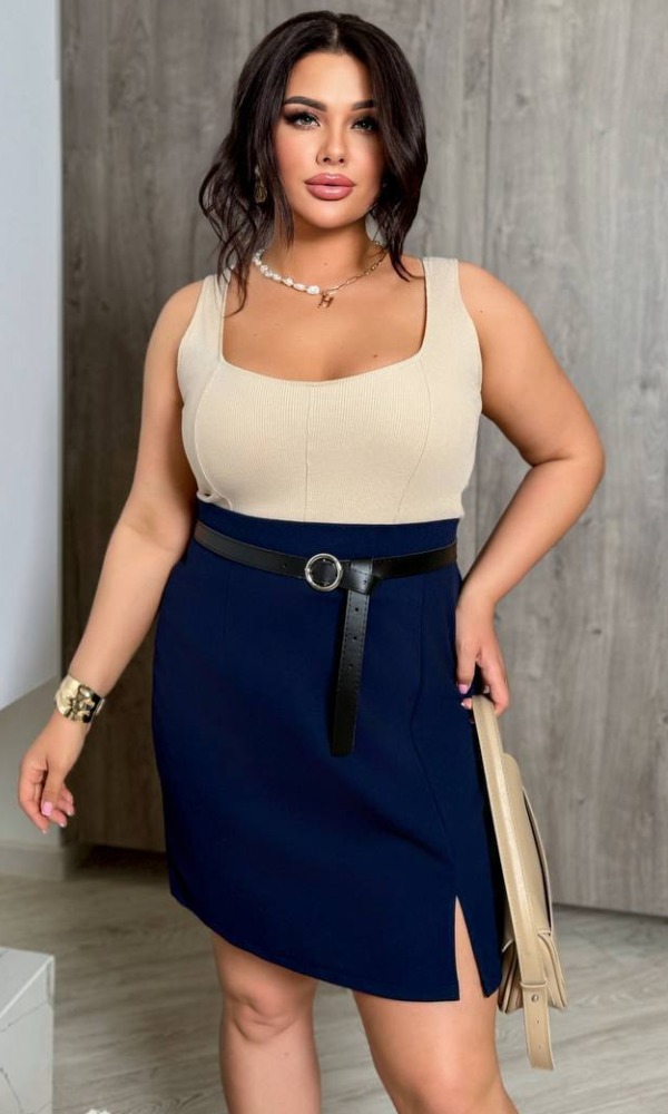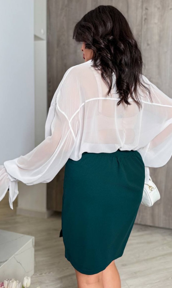Спідниця прямого крою, не великий розріз спереду. На талії позаду резинка.