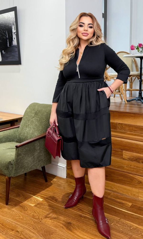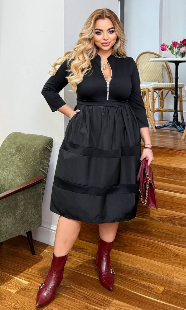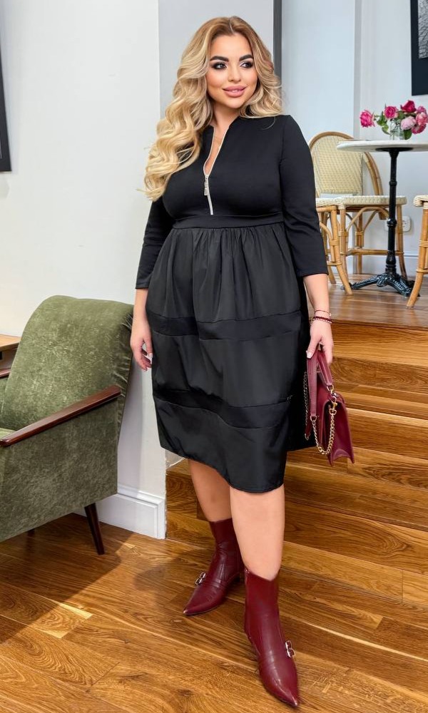 Сукня сподобалася. Оригінальний і молодіжний фасон. була приємно вражена якістю тканини і пошиву. Чудово сів на мій 56 розмір. Точно відповідає фото і опису. Раджу всім!